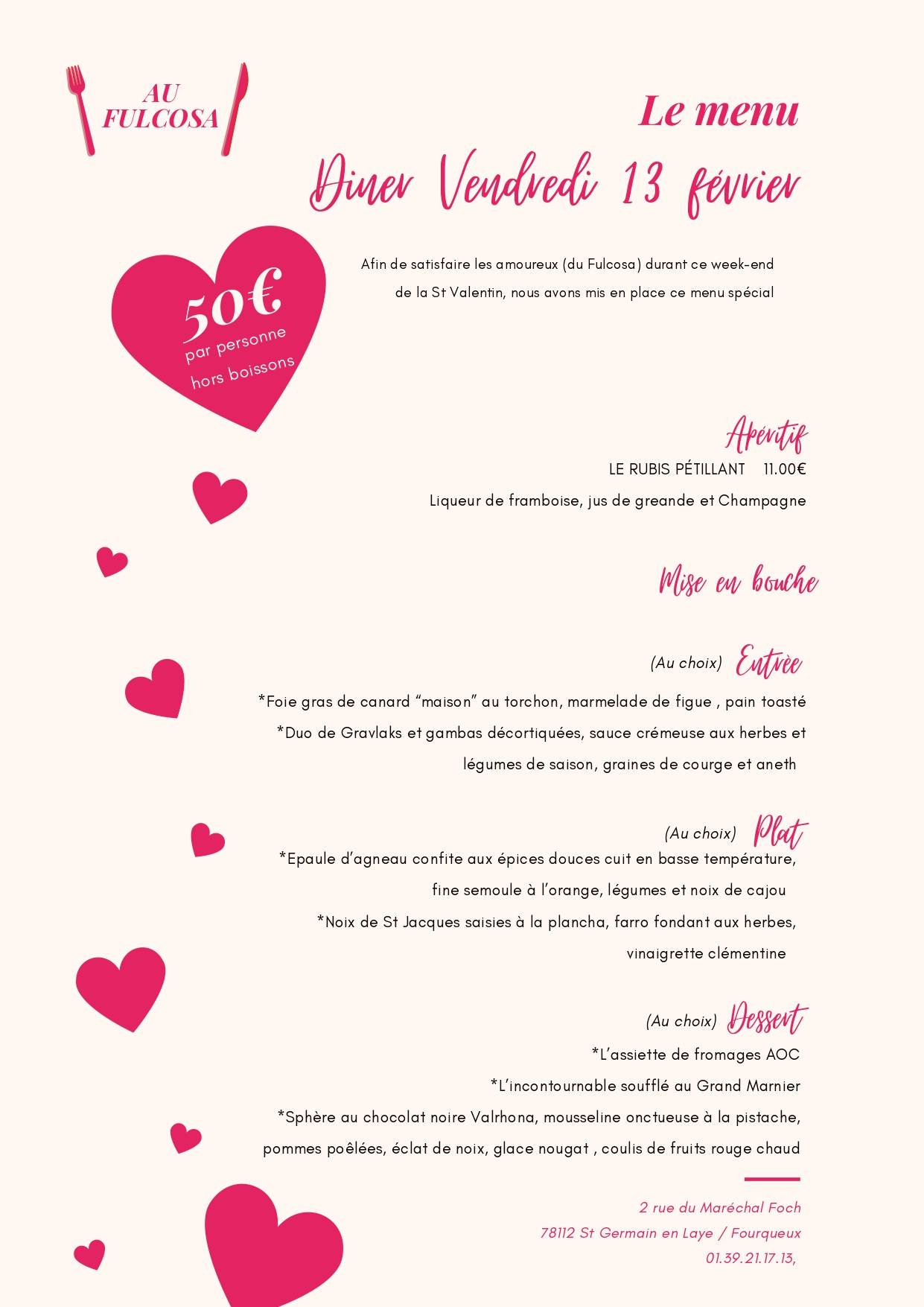 Situé dans l’ancien village de Fourqueux, devenu un quartier de Saint-Germain-en-Laye, Au Fulcosa profite d’un emplacement discret sur la rue principale. Sa terrasse ensoleillée, à l’écart de l’agitation, vous offre un cadre paisible pour vos déjeuners et dîners.